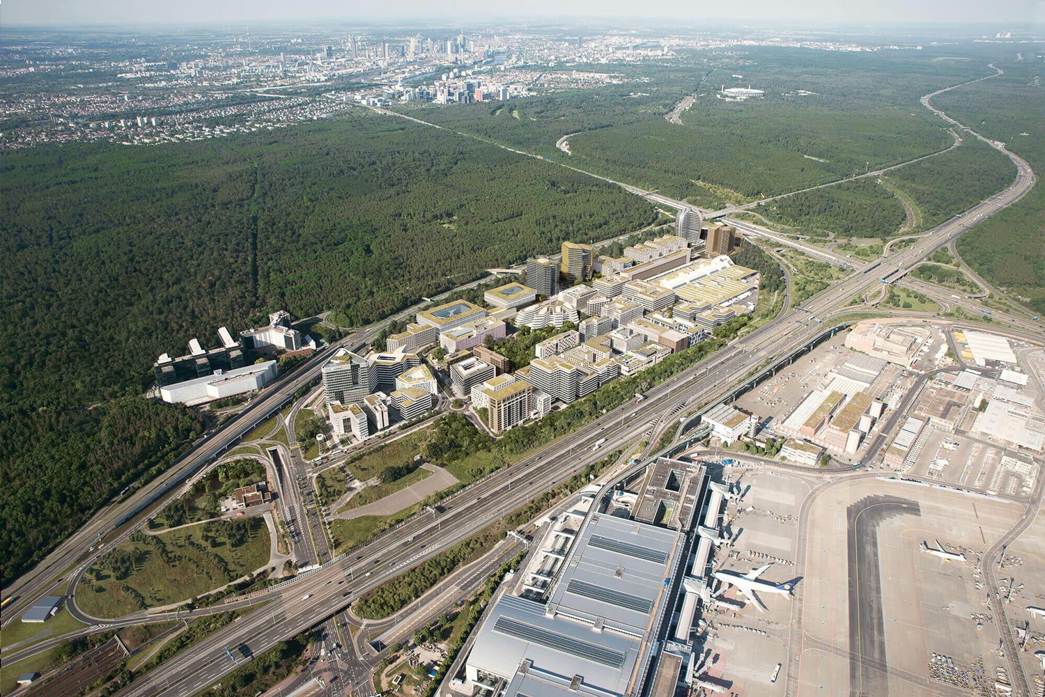 Ob per Flugzeug, Bahn, Auto oder Fahrrad – das EUROPA-CENTER Flow in Gateway Gardens überzeugt durch eine erstklassige Anbindung. Der Flughafen, der ICE-Fernbahnhof sowie der Regionalbahnhof und die S-Bahn sind in unmittelbarer Nähe. Die Autobahnen A3 sowie A5 bieten einen schnellen Zugang nach Gateway Gardens. Zahlreiche Radwege und Parkmöglichkeiten sind ebenso vorhanden. Ein idealer Standort für Unternehmen, die Mobilität großschreiben.